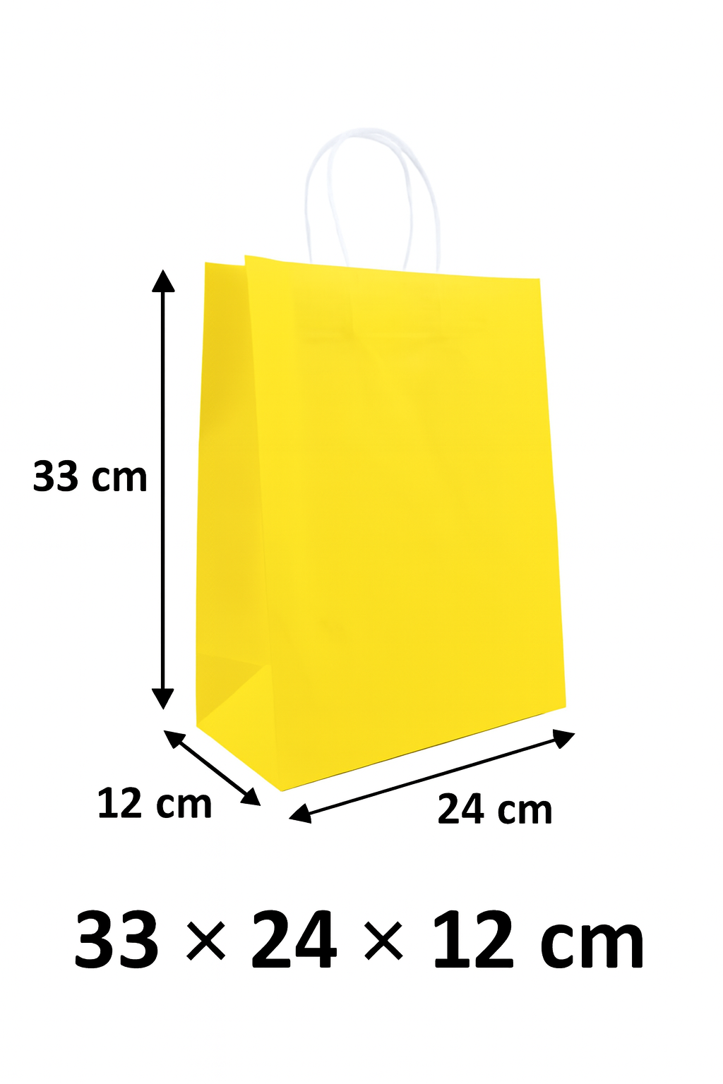 paper bags with handle-(33x24x12cm)-12pcs-yellow