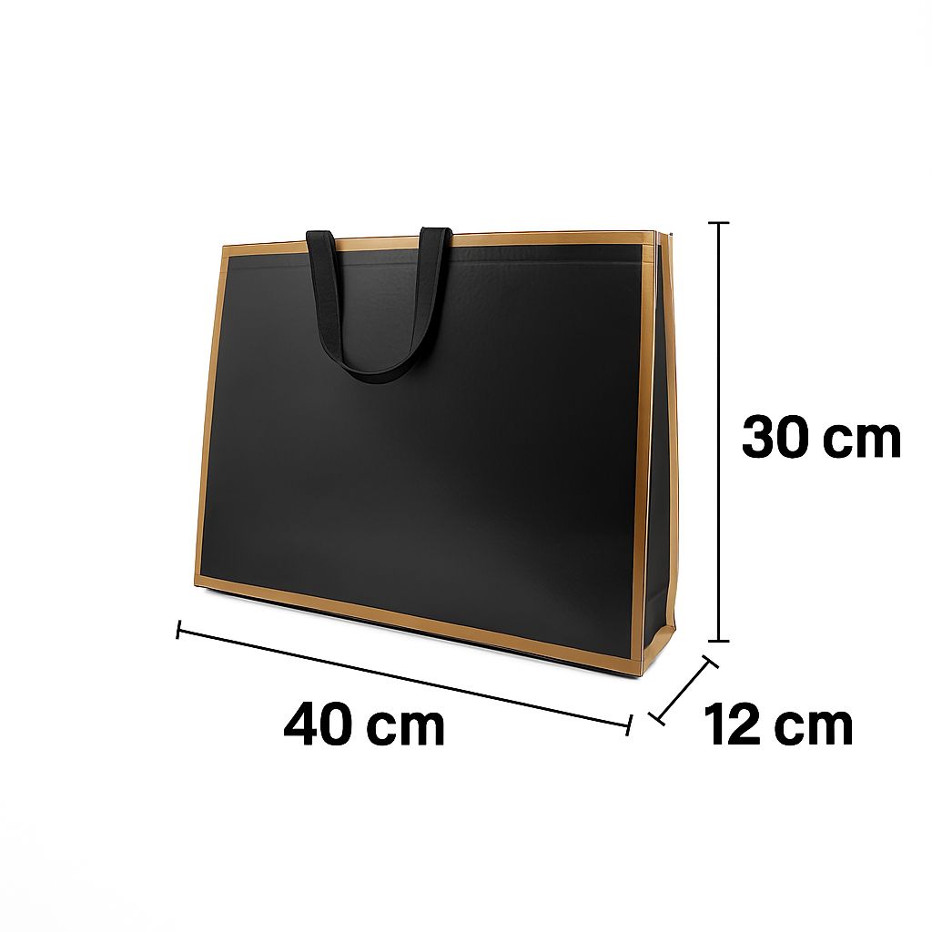 Rectangular handle raw material bags (12*40*30) cm - 1 piece / Darkblue-GoldBorder