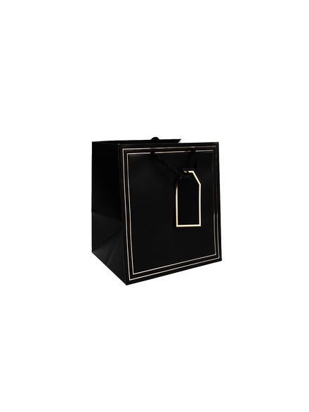 Luxury thick gift paper bags-black-gold border -(17x22x21cm)-12pcs