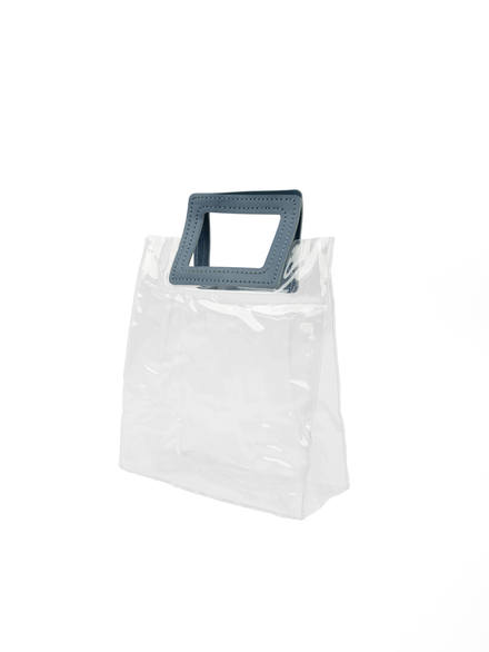 nylon bag with leather handle-(17x15x7cm)-1piece-blue